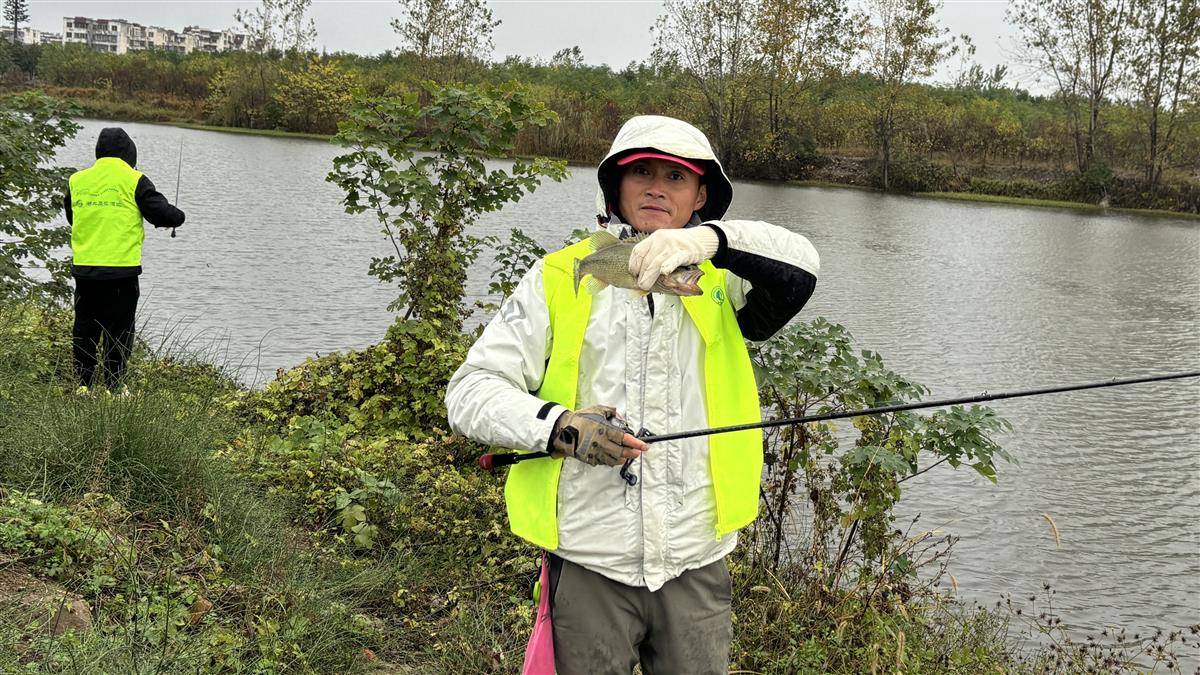风雨未能阻挡大家比赛的激情。抛投、操饵、刺鱼、搏鱼……戴着帽子、套上手套,选手们操作着手中的渔竿,不断调整手法和钓位。